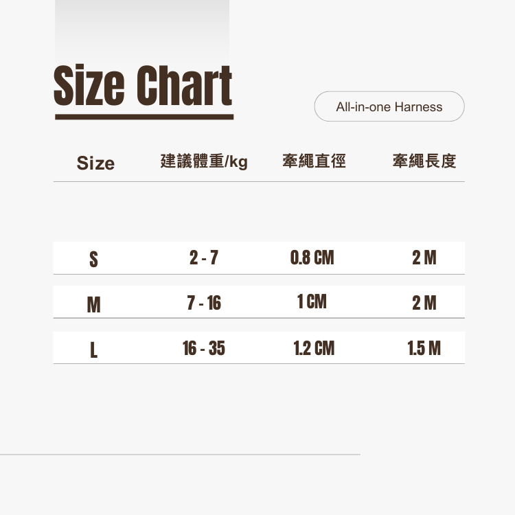 一款只要看體重就能讓主人判讀出適合尺寸的牽繩