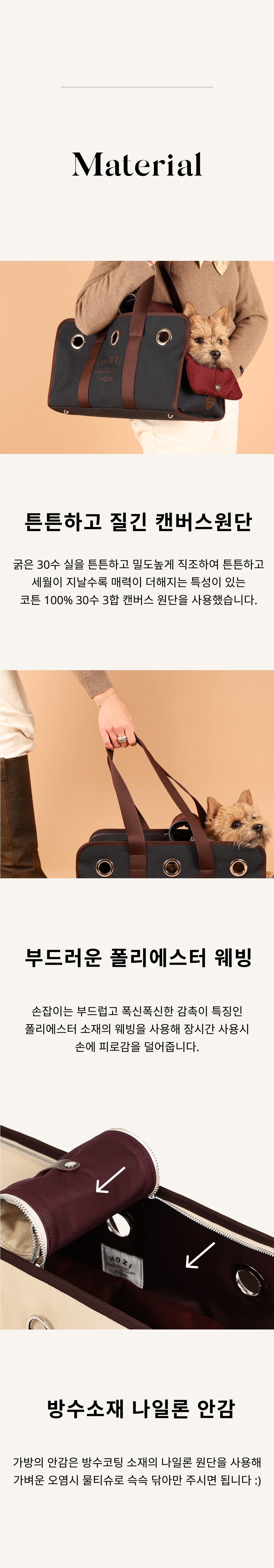 帆布設計,袋內設計可拆式內襯,輕柔且防水抗污。