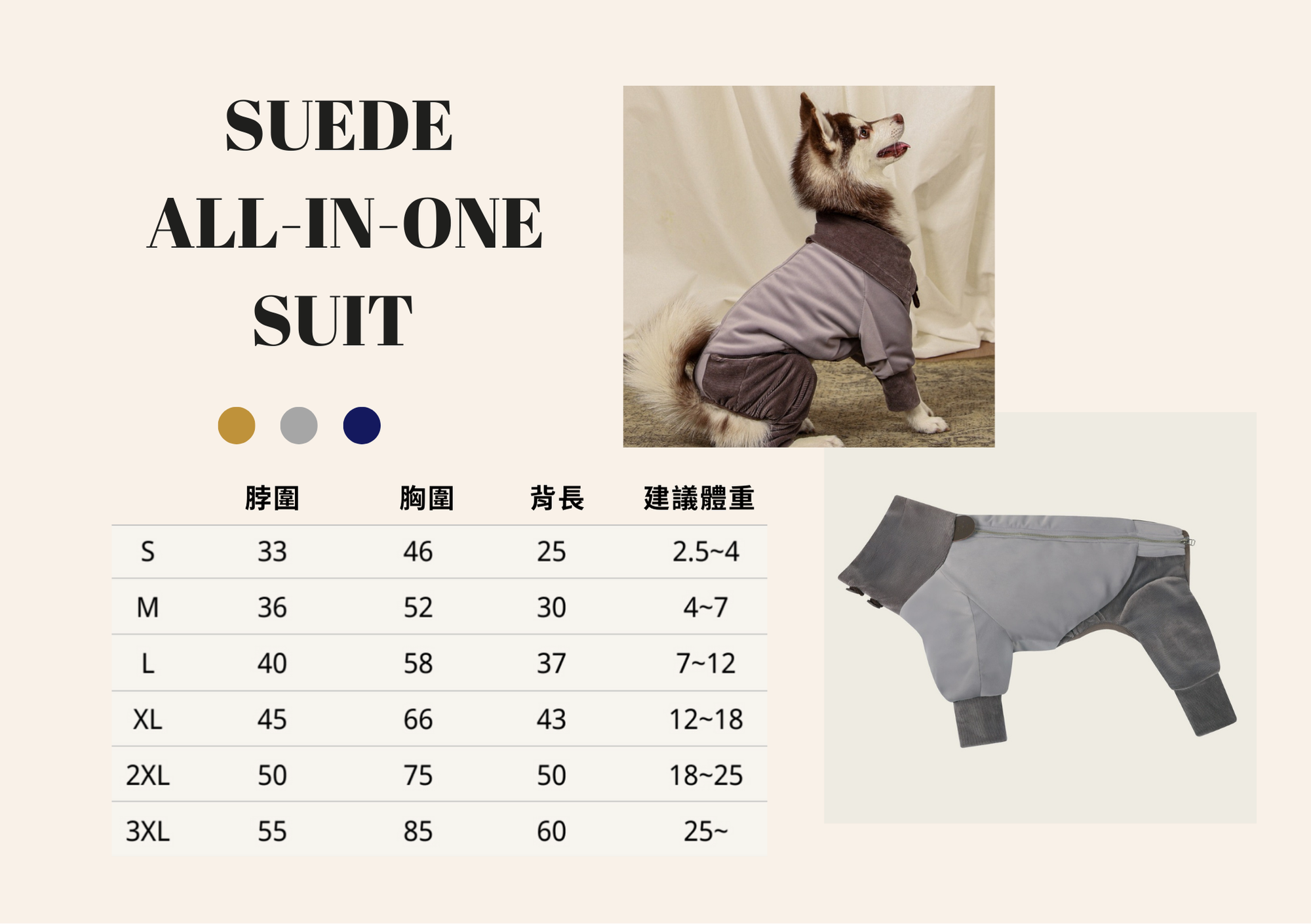 保暖麂皮一體式服裝,免受寒風侵襲,為了讓寵物們更舒適享受,增加柔軟棉織物,背部拉鍊設計,方便輕鬆穿脫
